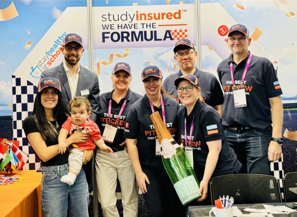 A keycard holder design for attendees at ICEF Rome, distributed to school administrators and agents staying at the event hotel. The front features a humorous take on “When in Rome…” with an illustration of a sleeping traveller and the tagline “Sleep well knowing you have the right insurance!” This design aims to make the brand memorable in a lighthearted way.