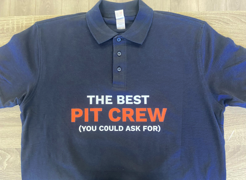 A branded t-shirt design created for the student team to wear at conferences and events, reinforcing the “We Have The Formula” theme for the year. The design features “The best pit crew (you could ask for)” on the front, a custom strategic logo on the back, and suggested racing-inspired patches to give it a motorsport aesthetic.
