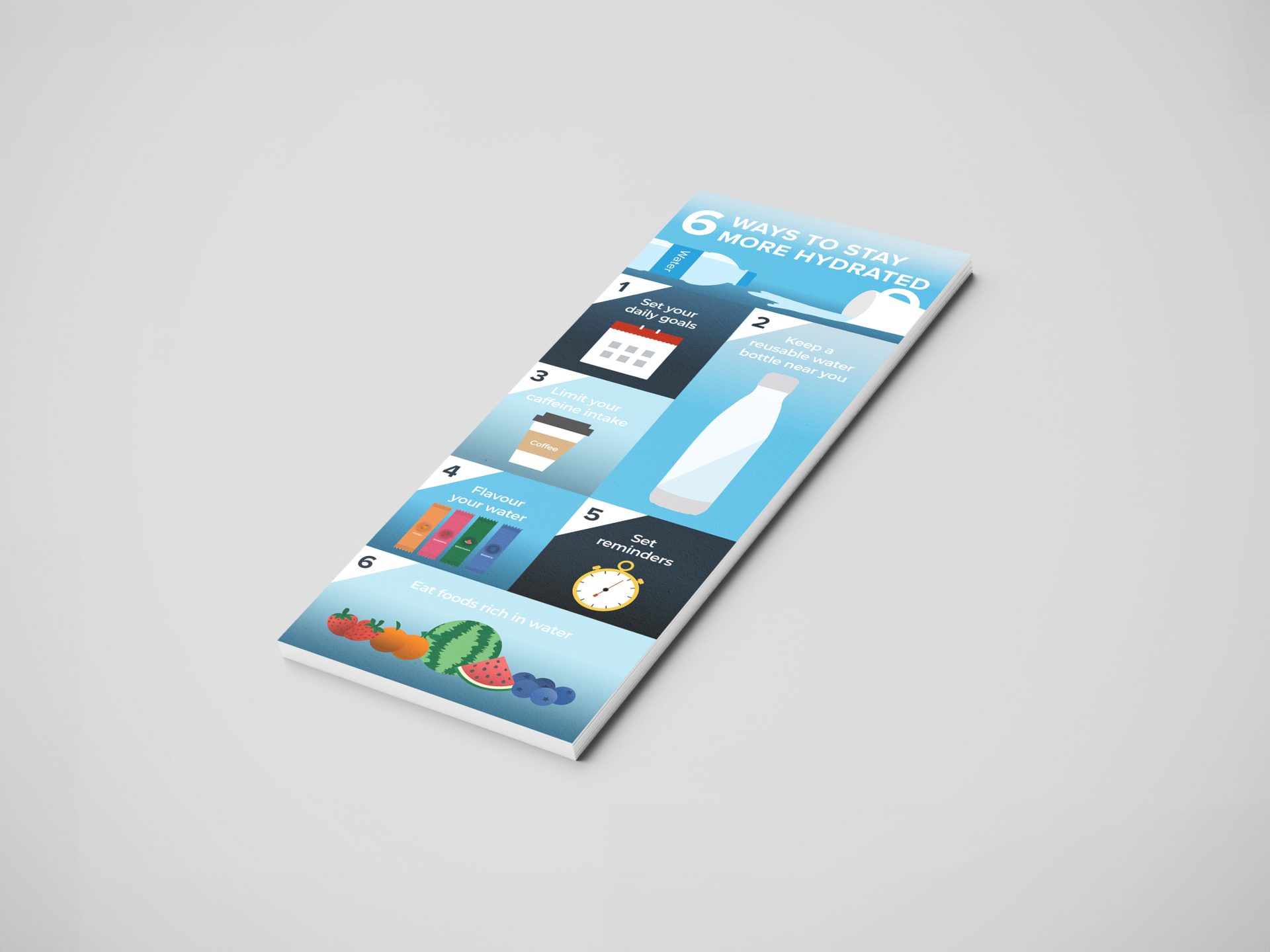 This infographic was designed as a creative personal project to highlight fun and practical tips for staying hydrated. Combining engaging visuals with actionable advice, it serves as both a reminder and inspiration for daily wellness.